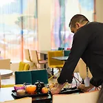 J'ai adoré l'immeuble de style industriel et ma chambre extrêmement agréable. La nourriture était super, surtout le café, le thé et les œufs au petit déjeuner. Des lits douillets, et la bouilloire, la machine Nespresso et la cuisine ont été une belle touche. Le personnel était bien informé, il a été heureux d'aider😀